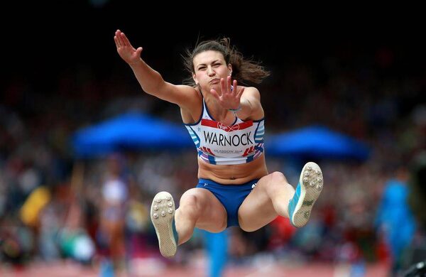 Scotland's Sarah Warnock jumps in the women's long jump qualifying at Hampden Park, at the Commonwealth Games 2014, in Glasgow, Wednesday July 30, 2014.David Davies/The Associated Press