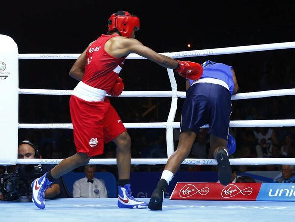 Nicola Adams, left, of England and Frandi de Silva of Sri Lanka box during their women's flyweight quarter-final bout at the 2014 Commonwealth Games in Glasgow, Scotland, July 30, 2014.ANDREW WINNING/Reuters