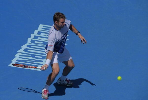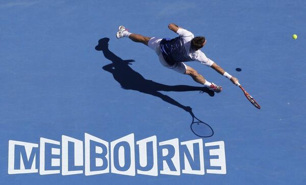 Stan Wawrinka of Switzerland stretches out for a return to Kei Nishikori of Japan during their quarter-final match at the Australian Open.Lee Jin-man/The Associated Press
