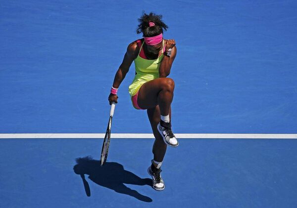 Serena Williams of the U.S. reacts after missing a point against Dominika Cibulkova of Slovakia during their women's singles quarter-final match at the Australian Open.BRANDON MALONE/Reuters