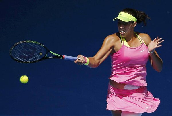 Madison Keys of the U.S. hits a return to compatriot Venus Williams during their women's singles quarter-final match at the Australian Open.CARLOS BARRIA/Reuters