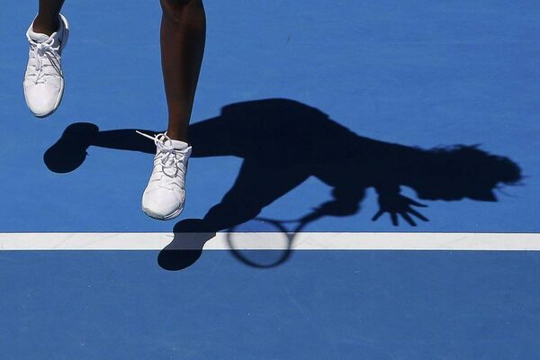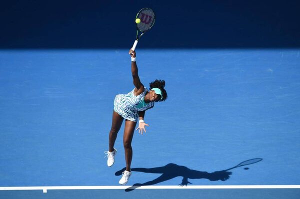 Venus Williams of the U.S. casts a shadow as she serves to compatriot Madison Keys during their women's singles quarter-final match at the Australian Open.CARLOS BARRIA/Reuters