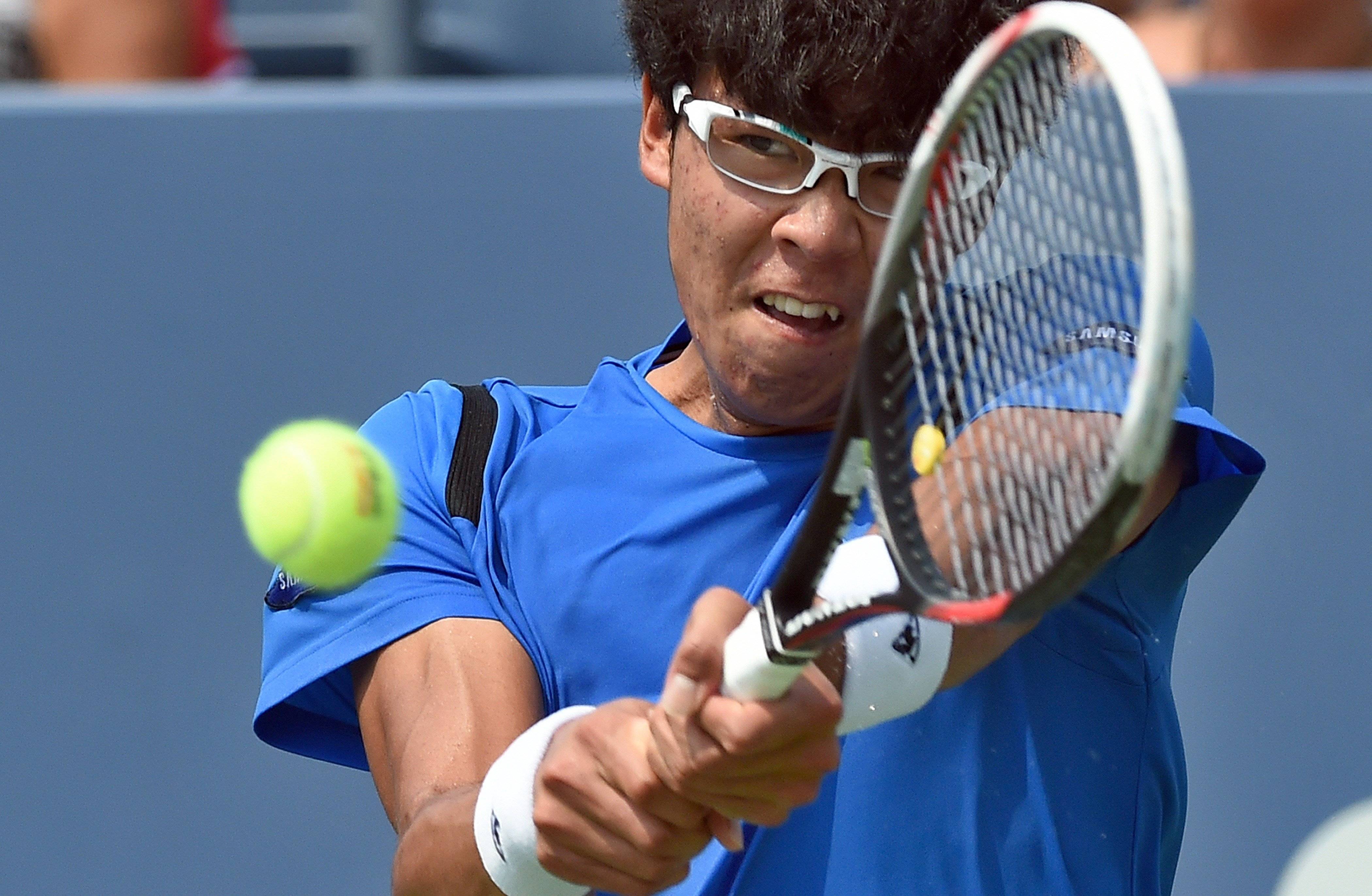 Hyeon Chung of South Korea returns to Stan WawrinkaJewel Samad/Getty Images
