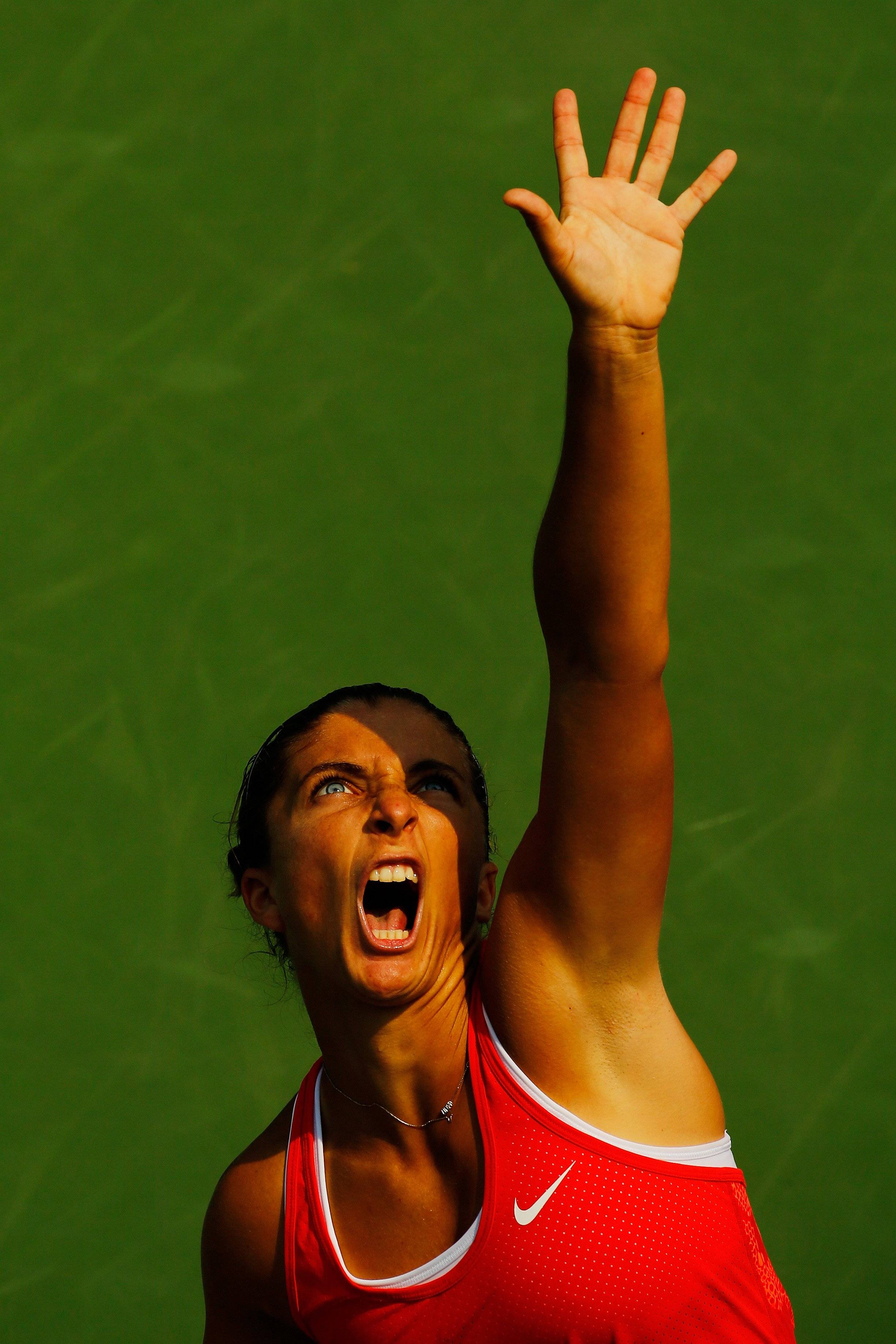 Sara Errani of Italy serves to Jelena OstapenkoAl Bello/Getty Images