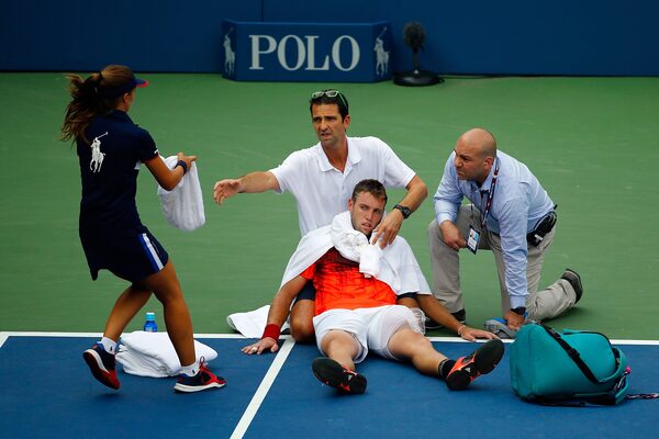 Jack Sock of the United States receives assistance or heat exhaustionGetty Images