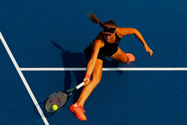 Jelena Ostapenko of Latvia returns a shot to Sara ErraniAl Bello/Getty Images