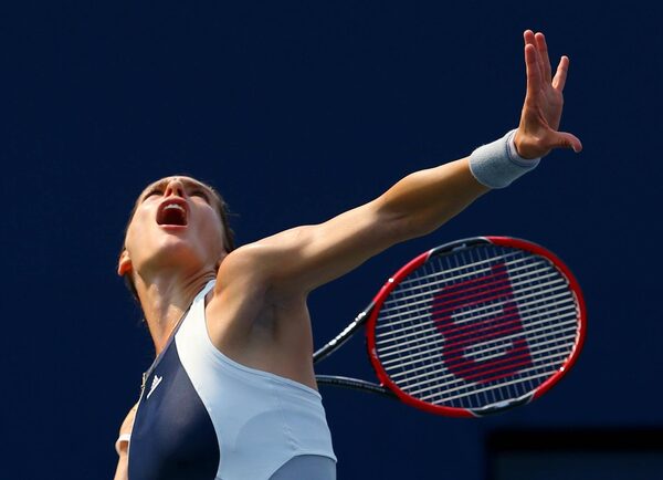 Andrea Petkovic of Germany serves to Elena VesninaJerry Lai
