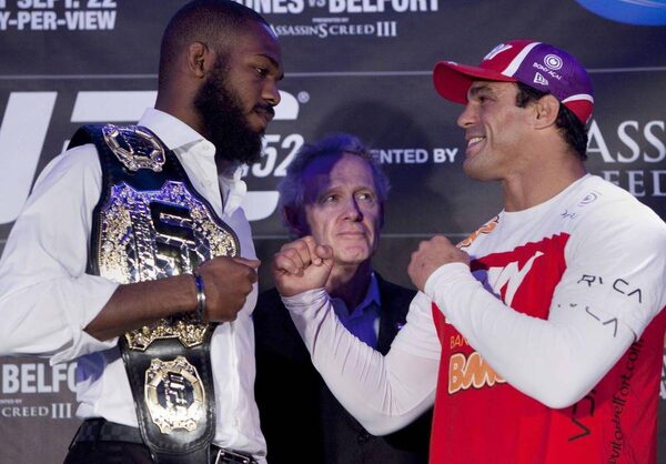 Belfort (21-9) looked up and smiled at Jones, who at six foot four holds a four-inch height advantage.