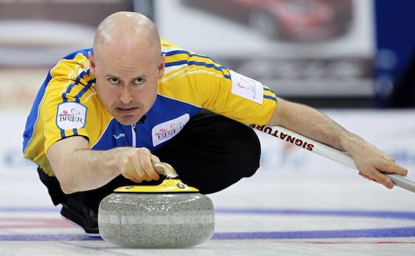 Kevin Koe of Calgary edged Brad Gushue of St. John’s 5-4 at the Grand Slam of Curling Canadian Open final on Sunday. (file photo)JONATHAN HAYWARD/The Canadian Press