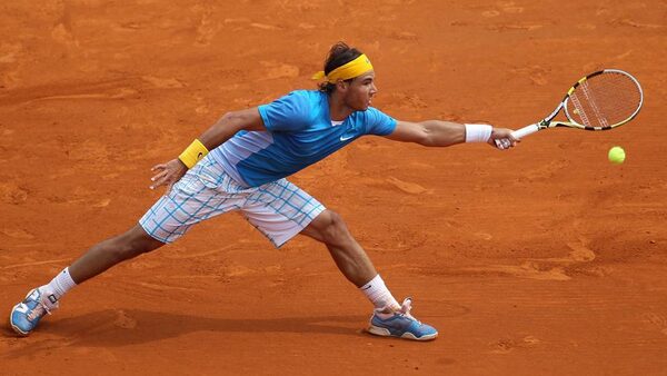 Rafael Nadal of Spain stretches for a forehand in his match against Juan Carlos Ferrero of Spain during day five of the ATP Masters Series at the Monte Carlo Country Club.Julian Finney