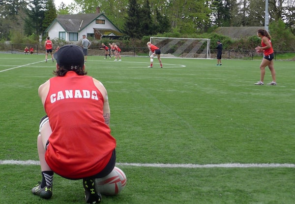 Rugby sevens player Britt Benn watches a scrimmage this week in Victoria ahead of a tournament to be held in Langford, B.C.Neil Davidson/The Canadian Press