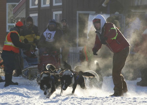 Healy, Alaska, musher Dave Dalton prepares to leave the starting chute Saturday, Feb. 4, 2017, at the start of the Yukon Quest International Sled Dog Race in Whitehorse, Yukon. The 1,000-mile race finishes in Fairbanks, Alaska.SAM FRIEDMAN/The Associated Press