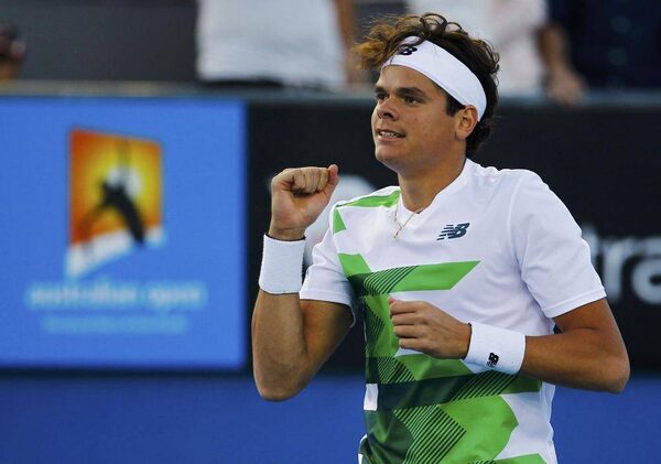 Milos Raonic of Canada celebrates defeating Philipp Kohlschreiber of Germany during their men's singles match at the Australian Open tennis tournament in Melbourne January 19, 2013.NAVESH CHITRAKAR/Reuters