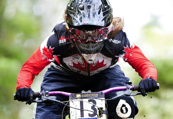 Canada's Lauren Rosser of Squamish, B.C., makes her way to victory in the junior women's mountain bike downhill race on Sunday Sept. 5, 2010., at the Mountain Bike and Trials World Championships at Mont-Sainte-Anne, in Beaupre, Que. THE CANADIAN PRESS/Sean KilpatrickSean Kilpatrick/The Canadian Press