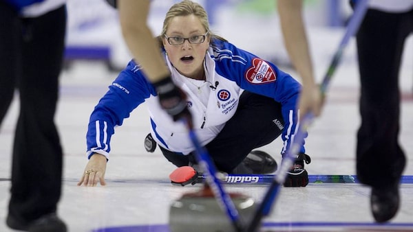 The Manitobans weren't spared a mishap. Second Jill Officer tripped on a guard in front of the house while sweeping the final stone thrown by Jones. It was supposed to be an open hit to score two, but Officer fell and burned the stone.