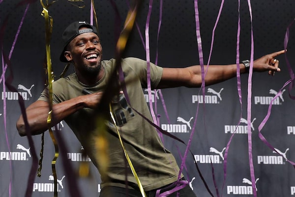 Tuesday's press conference was vintage Bolt, sprinkled with more than a dash of hype from his long-time shoe sponsor Puma. There were video tributes from actors Samuel L. Jackson and Idris Elba along with model Cara Delevingne and former soccer star Thierry Henry. Mr. Bolt's parents joined him on stage and Puma presented him with special gold and purple shoes for Saturday's race emblazoned with "Forever Fastest" on the sides. Mr. Bolt picked the colours himself; purple because it was the colour of his high-school sports teams and gold because "I'm the golden boy."