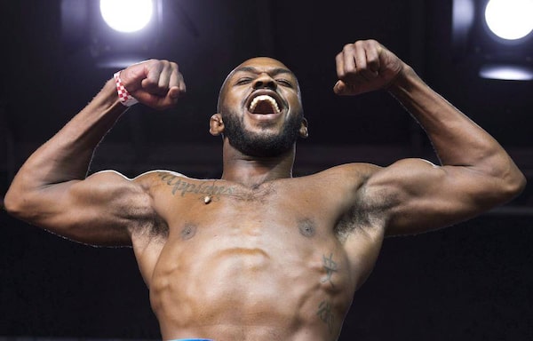 Jon Jones flexes during the weigh in for UFC 165 in Toronto, Friday September 20, 2013. Jones is backing Georges St-Pierre's decision to give up his title and walk away from the sport.Mark Blinch/The Canadian Press