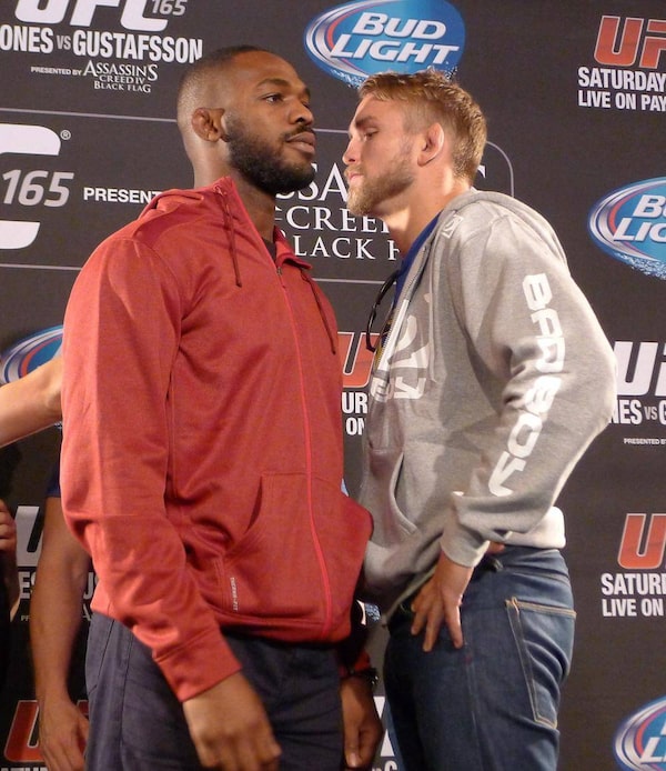 Light-heavyweight champion Jon (Bones) Jones (left) squares off with Swedish challenger Alexander (The Mauler) Gustafsson in Toronto on Thursday, Sept.19, 2013 at a news conference ahead of UFC 165 on Saturday.NEIL DAVIDSON/The Canadian Press