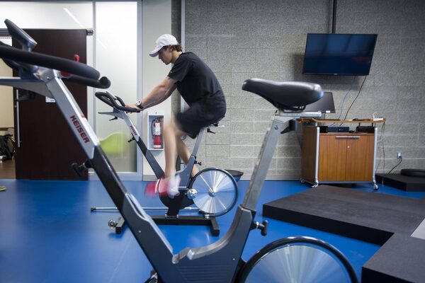 McMorris rehabs on a stationary bike.The Globe and Mail