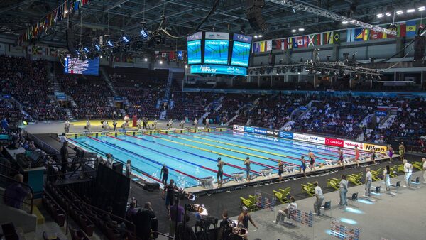The venue is playing a unique host to this week's FINA world short-course swimming championships. A gleaming 25-metre pool sits where the ice rink should be.