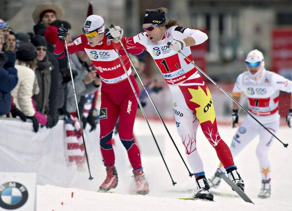 Canada’s Devon Kershaw, right, slips past Norway’s Anders Gloeersen at a World Cup race in Quebec City last Friday.Jacques Boissinot/The Canadian Press