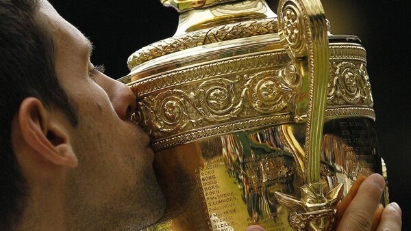 In this July 3, 2011 file photo, Serbia's Novak Djokovic kisses the trophy after defeating Spain's Rafael Nadal in the men's singles final at the All England Lawn Tennis Championships at Wimbledon. (AP Photo/Kirsty Wigglesworth, File)Kirsty Wigglesworth/The Associated Press