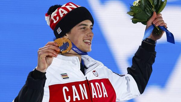 Bronze medalist Mark McMorris of Canada celebrates during the medal ceremony for the men's snowboard slopestyle competition in the Olympic Plaza at the 2014 Sochi Olympic Games February 8, 2014.Reuters