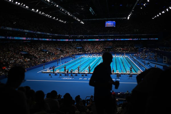 A general view of the pool during the Paris 2024 Olympic Games at the Paris La Défense Arena in Nanterre, west of Paris, on Aug. 3.OLI SCARFF/Getty Images