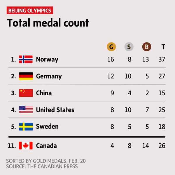 Thanks for following along with our coverage of the Winter Games. Want more Globe and Mail newsletters? Sign up here. Email us at audience@globeandmail.com with any feedback about this newsletter.