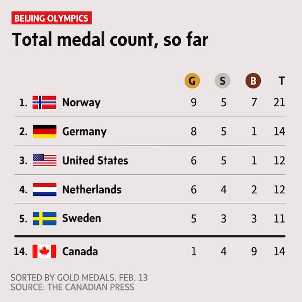 - Canada’s Steven Dubois won the bronze medal in the 500-metre short-track race on Sunday morning, his second medal of the 2022 Beijing Olympics. He won silver in the 1,500-metre race on Wednesday. The Canadian women’s 3,000-metre relay team failed to reach the podium, placing fourth.