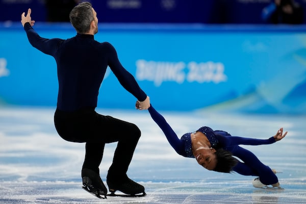 Canadians Eric Radford and Vanessa James compete in the pairs team free skate program during the figure skating competition at the 2022 Beijing Olympics, on Feb. 7.Natacha Pisarenko/The Associated Press