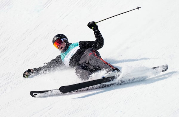Canada's Evan McEachran falls on his landing in his second run during the men's freeski big air final at the 2022 Winter Olympics in Beijing on Feb. 9, 2022.Paul Chiasson/The Canadian Press