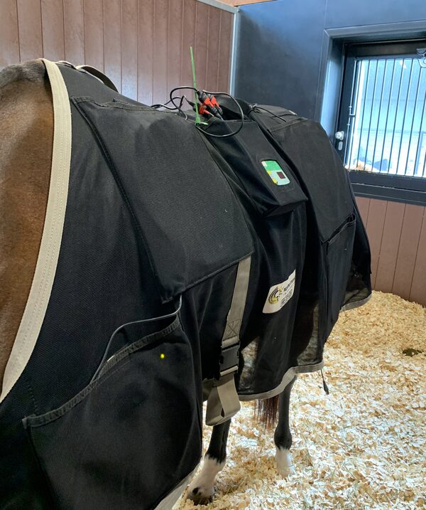 This heavy blanket, which emits an electromagnetic field, is one of thte tools Dr. Knabe uses to care for the horses.Courtesy of Usha Knabe