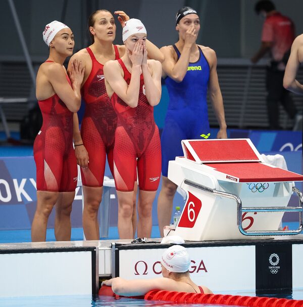 The women had been gunning for Canada’s fifth medal in the pool at the Tokyo Olympics, and their second in a swimming relay, to add to an already nice haul for Canadian female swimmers. It wasn’t to be this time, and they took it in stride.