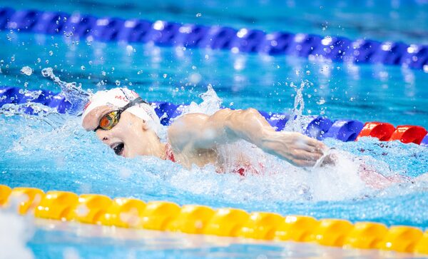 McIntosh swam leadoff for the Canadians. She was the very first swimmer to the pool’s edge with goggles in place before the race, ready to go after speed-walking across the deck and throwing off her oversized white coat. The Australians put their fastest racer first, so McIntosh took on superstar Ariarne Titmus.