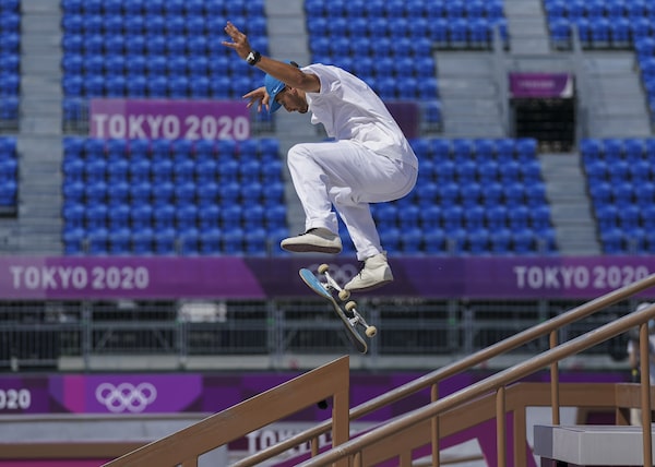 Vincent Milou of France competes in Men’s Street Skateboarding during the Tokyo Olympics in Tokyo, Japan, on July 25, 2021.Nathan Denette/The Canadian Press
