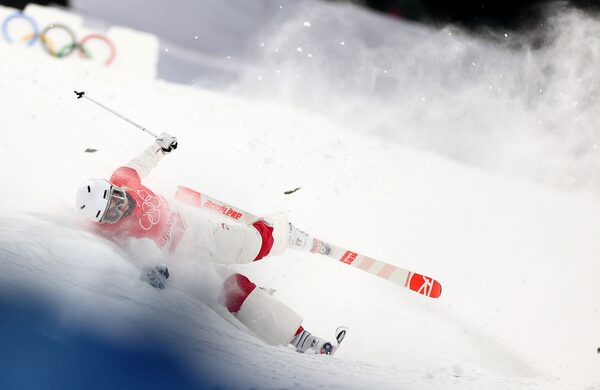 Canada's Justine Dufour-lapointe of Canada crashes during the Women's Moguls first final at Genting Snow Park, in Zhangjiakou, China on Feb. 6.LISI NIESNER/Reuters
