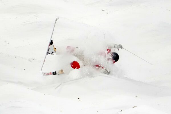 As Justine began a series of media interviews, Gagnon started down the course for the event’s second final. She landed her first jump, but four or five moguls into the second segment, she hit one at a bad angle and bounced sideways, splashing into the next mogul.