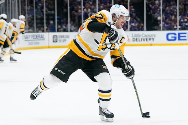 Pittsburgh Penguins captain Sidney Crosby shoots the puck during a game against the New York Islanders, in Uniondale, N.Y., on May 22.Frank Franklin II/The Associated Press