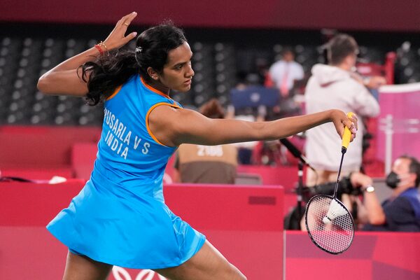 India's Pusarla V. Sindhu plays against Hong Kong's Cheung Ngan Yi during their women's singles group stage badminton match on July 28.Dita Alangkara/The Associated Press