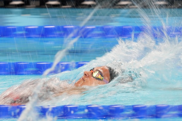 Kylie Masse, of LaSalle, Ont., competes in the women's 200-metre backstroke final at the 2024 Summer Olympics in Nanterre, France, Friday, Aug. 2, 2024.Christinne Muschi/The Canadian Press