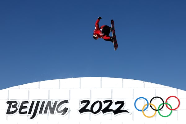 Sebastien Toutant of Team Canada performs a trick during the men's Snowboard Slopestyle qualification. Toutant qualified in eighth place on day 2 of the Beijing 2022 Winter Olympic Games.Al Bello/Getty Images