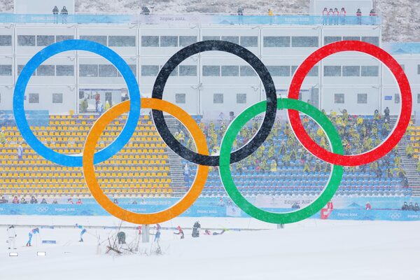 The Olympic Rings at the National Cross-Country Centre, in Zhangjiakou, China, on Feb. 13.MARKO DJURICA/Reuters