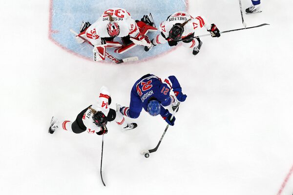 With American goaltender Aerin Frankel pulled for the extra attacker, the Americans make it count on their 26th shot of the game, with Knight tipping Laila Edwards’s shot past Ann-Renée Desbiens, ending her shutout bid on a shot she had almost no chance of saving.