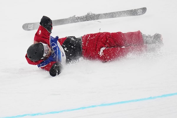 Canada's Cassie Sharpe crashed during the women's freestyle skiing halfpipe qualifications and left the course on a snowsled.Gregory Bull/The Associated Press