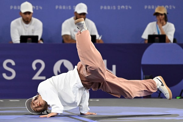 Japan’s b-girl Ami won gold at the Olympics’ first breaking event by spinning, flipping and toprocking past a field of 16 dancers Friday in a high-energy competition that may not return for future Games.