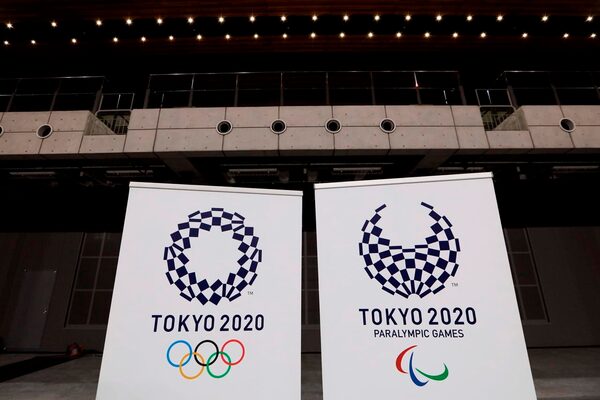 Signs for the Tokyo 2020 Olympics and Paralympics are displayed at the grand opening of the Ariake Arena in Tokyo on Feb. 2, 2020.The Associated Press