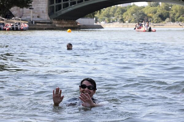 Paris Mayor Anne Hidalgo swims in the Seine river, Wednesday, July 17, 2024 in Paris. After months of anticipation, Paris Mayor Anne Hidalgo took a dip in the Seine River on Wednesday, fulfilling a promise she made months ago to show the river is clean enough to host open-swimming competitions during the 2024 Olympics.JOEL SAGET/The Associated Press
