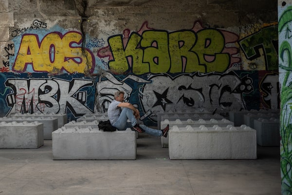 A man sits on concrete blocks placed by the city’s authorities to deter people from setting up encampments in Paris, on July 25.Siegfried Modola/The Globe and Mail