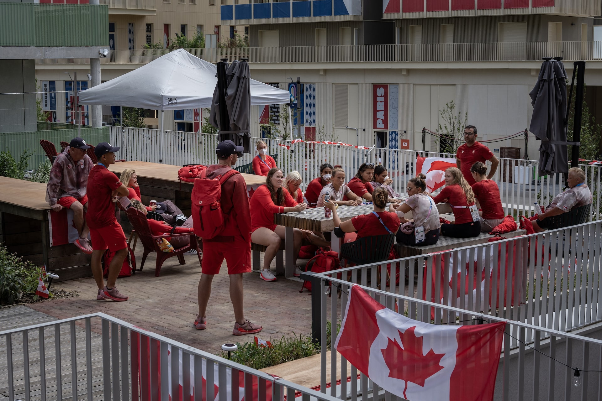 Some Canadian athletes spent Tuesday exercising outside, jogging, doing gymnastics and holding team meetings.